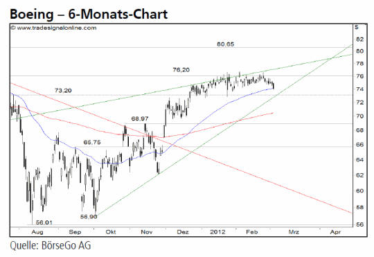 Ausblick: Das Verhalten im Bereich von 73,20 USD sollte genau beobachtet werden. Die Aufgabe dieses Niveaus hätte eine deutlichere Kurskorrektur zur Folge. Die Short-Szenarien: Unterhalb von 73,20 USD wären direkte Verluste bis zum nächsten Unterstützungsniveau von 68,97 USD einzuplanen. Misslingt auch dort eine Kursstabilisierung, würde prompt das Niveau bei 65,75 USD auf die Agenda rücken. Die Long-Szenarien: Ein Abprall vom Kreuzunterstützungsbereich bei 73,20 USD könnte hingegen den nächsten Aufwärtsschub einleiten und die Aktien über den Widerstand bei 76,20 USD hinausheben. Die Reaktivierung der Käufer wäre geglückt und Kurssteigerungen bis 80,65 USD zu erwarten. Überschreiten die Aktien auch diese Hürde, wäre ein mittelfristiges Kaufsignal mit weiteren Zugewinnen bis 88,29 USD aktiviert.