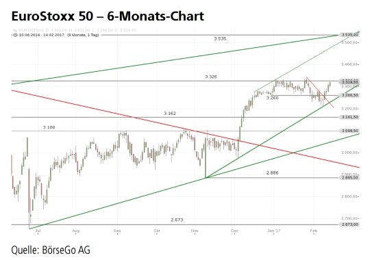 Rückblick: Der EuroStoxx 50 Index bewegte sich ab Dezember 2016 steil nach oben.