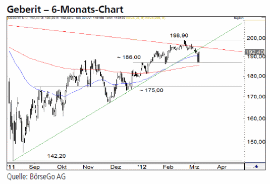 letzten Zwischenhochs von 198,90 CHF verlaufen muss, ist ein