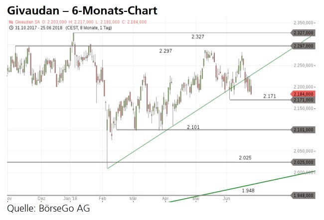 Rückblick: Die Aktien von Givaudan bewegten sich in den vergangenen Jahren innerhalb eines Aufwärtstrendkanals stetig nach oben. Im Januar 2018 gelang es sogar, die Oberkante des Trendkanals zu durchbrechen, was sich jedoch alsbullishe Übertreibung darstellte.