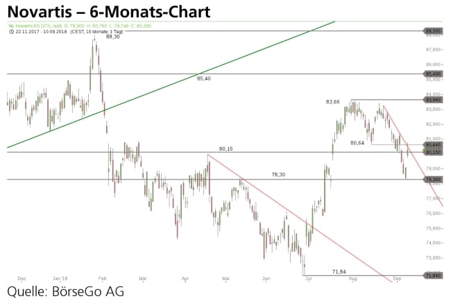 Novartis an der 80,64 CHF-Marke wieder zurück, könnte das
