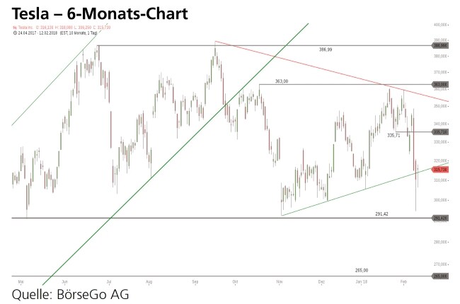 Die Short-Szenarien: Rutscht Tesla unter die 291,42 USD-Marke,