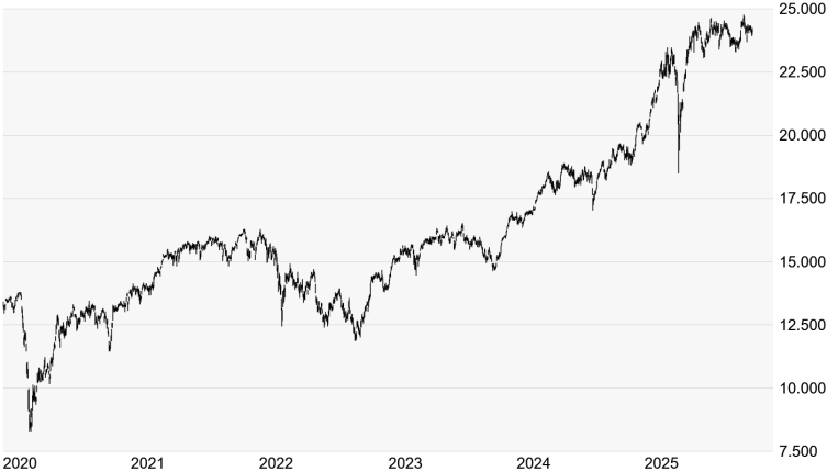 Charttechnik: Der NASDAQ-100 hat gestern wieder Kurs auf sein Rekordhoch aus der Vorwoche bei 26.182 Punkten genommen - im Tageshoch ging es bis auf 26.133 Punkte aufwärts. Trotz aller Euphorie in Sachen Künstlicher Intelligenz (KI) ist jedoch auch eine steigende Nervosität auszumachen. Die Zweifel an den Bewertungen zahlreicher Tech-Konzerne nehmen wieder zu. Der NASDAQ-100 ist in den vergangenen drei Handelssitzungen stets deutlich unterhalb seines Tageshochs aus dem Handel gegangen. Möglicherweise haben die immer neuen Geschäfte mit KI-Bezug kräftigere Gewinnmitnahmen verhindert. Bleiben weitere positive Nachrichten jedoch aus, könnte auch das Kaufinteresse nachlassen. Ein Rücksetzer auf das Zwischenhoch vom 10. Oktober bei 25.195 Punkten erscheint jederzeit möglich. Aus charttechnischer Sicht hätte aber auch ein Rücksetzer auf die aktuell bei 24.569 Punkten verlaufende 50-Tage-Linie noch keine gravierenden Folgen. Bleibt der Nachrichtenfluss hingegen intakt, dürften dem NASDAQ-100 auf der Oberseite wenig Steine im Weg liegen.
