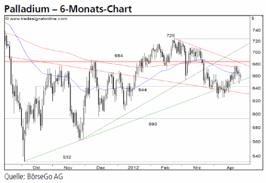 Rückblick: Der Kurs von Palladium erholte sich seit Oktober2011 vom starken Preissturz der Vormonate ...