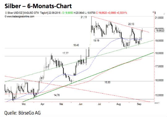 Rückblick: Eine steile Ausbruchsbewegung endete im Juli 2016 an der 21,13 USD-Marke und wurde konsolidiert.